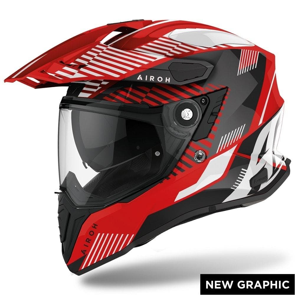 Airoh, azienda leader del settore offroad, si fa avanti con la geniale idea di realizzare il suo primo prodotto della categoria ON-OFF cioè un casco adatto sia all’uso stradale che fuori strada. È questo il caso del casco Airoh Commander. La peculiarità di un casco ON-OFF è la possibilità di rimuovere la visiera lasciando il tipico frontino da enduro per aggiungere degli eventuali occhiali protettivi (modalità MX) e viceversa rimuovendo il frontino e aggiungendo la visiera (modalità naked). Il casco Airoh Commander quindi non conosce limiti.
